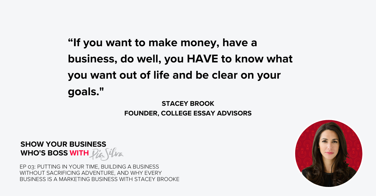 E. 03 - Putting In Your Time, Building A Business Without Sacrificing Adventure, And Why Every Business Is A Marketing Business With Stacey Brook