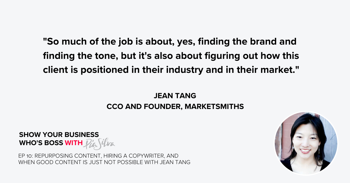 E. 10 - Repurposing Content, Hiring a Copywriter, and When Good Content Is Just Not Possible with Jean Tang