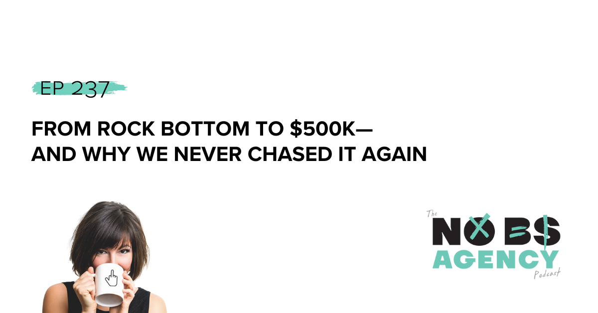 Flash forward twelve months and Steve and I had generated $500,000 in sales by changing to the No BS Agencies Model. It was a huge milestone for us after we’d struggled so much.