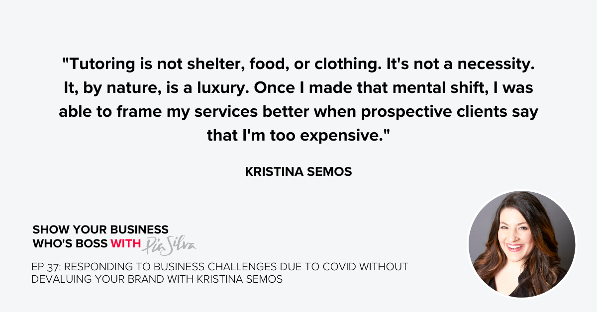 E. 37: Responding to Business Challenges Due to COVID Without Devaluing Your Brand with Kristina Semos
